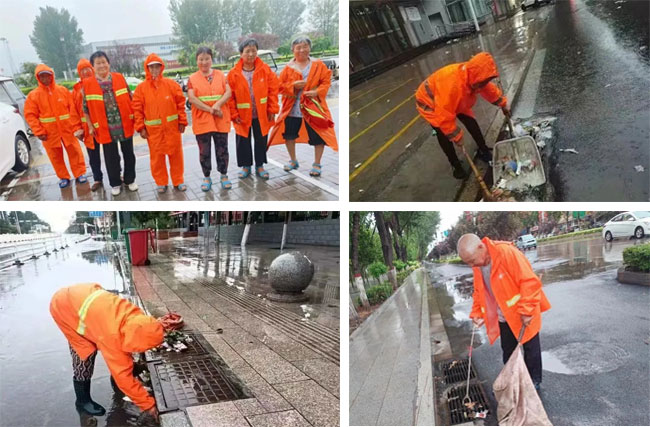 其中,成安福龙马在汛前积极组织环卫工人逐一疏通下水道、沙井口,清理堵塞的垃圾、落叶和淤泥,排除积水隐患,确保汛期地下管道排水顺畅。