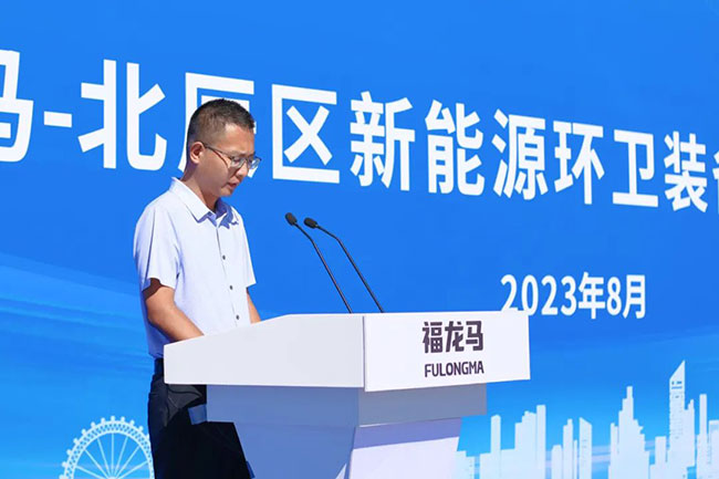 杨占雷在致辞中肯定了福龙马集团自2020年以来为北辰区环卫工作作出的重要贡献,并表示此次引进的新能源环卫作业车辆将大幅提升环卫项目运行效率,实现科学部署,推进城乡环卫一体化工作。