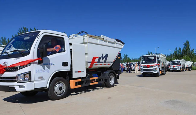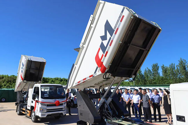 8月22日,福龙马-北辰区新能源环卫装备批量交付仪式在天津北辰区渣土处置场顺利举行。此次交付共计59台纯电动自装卸式垃圾车,集自装卸、转运桶装垃圾功能为一体,是福龙马最新研发的可广泛适用于城市街道、居民生活区的垃圾收运车辆。
